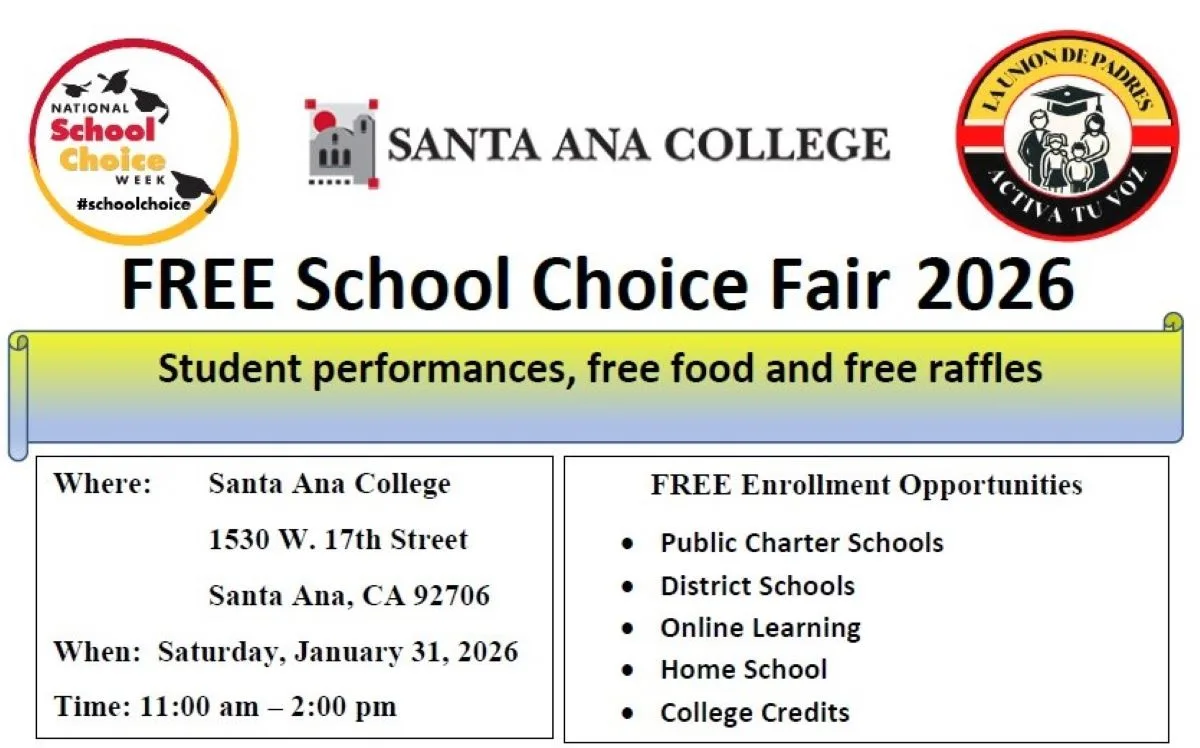 The annual Orange County School Choice Fair is coming up on January 31 at Santa Ana College, from 11 a.m. to 2 p.m.. This event is organized by La Union de Padres in collaboration with the National School Choice Awareness Foundation.