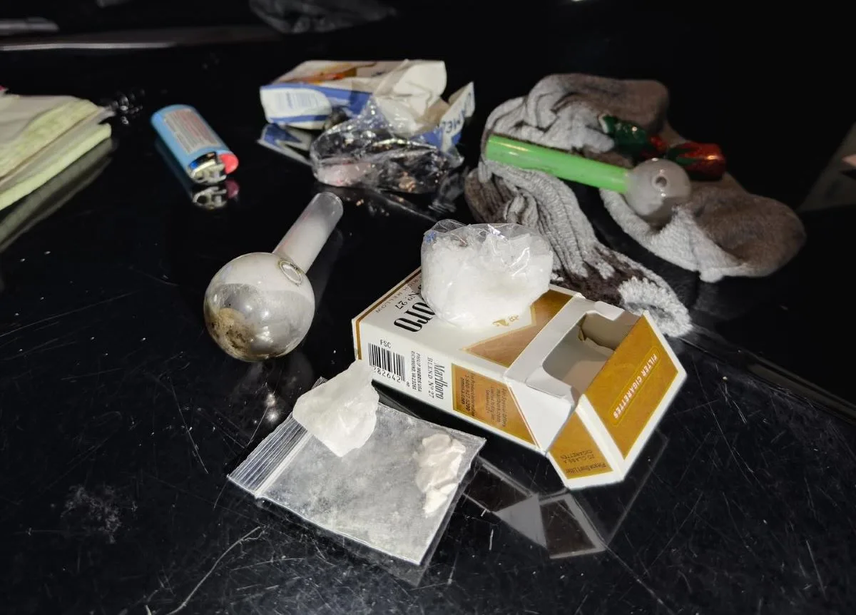 It was determined that an occupant of the car was on bail for a pending narcotics case. A search yielded 26 grams of methamphetamine, 3 grams of fentanyl and drug paraphernalia.