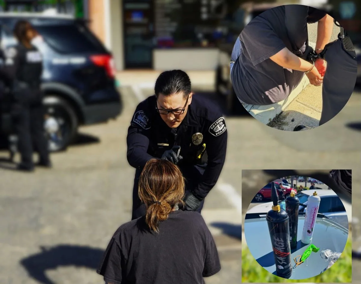 A passerby spotted a female driver appearing to inhale NOS (nitrous oxide) while behind the wheel, in the middle of the day, according to the Fullerton Police Department.