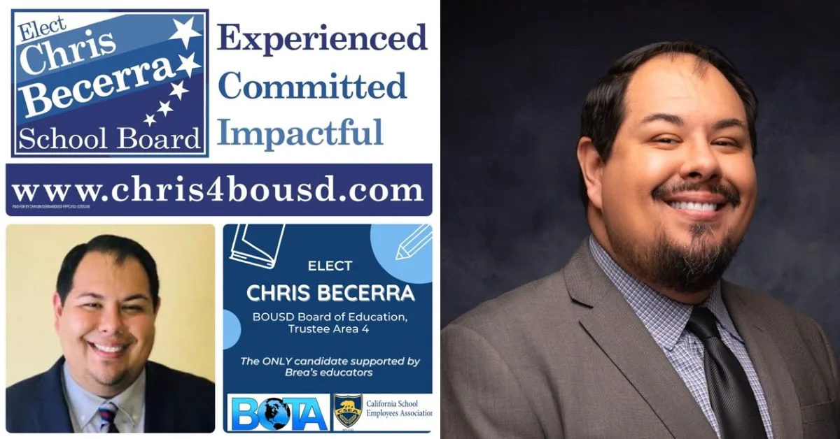 On December 18, 2025, Brea Police Detectives arrested Brea Olinda Unified School District School Board Trustee, Christopher Becerra, a 42-year-old resident of Brea, for 311.11(a) P.C., Possession of Child P*rnography, 647.6(a)(1) P.C., Annoying or M*lesting a Child, and 137(c) P.C., Falsifying Evidence, and Bribing, Influencing, Intimidate or Threatening Witnesses. Mr. Becerra is also an employee at Santa Ana College and on the Board of Trustees of the North Orange County ROP.