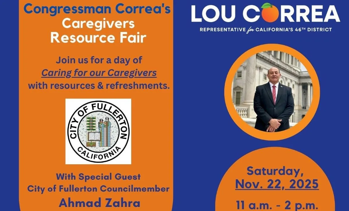Congressman Lou Correa’s office will be hosting a Caring for Caregivers Resource Fair this Saturday, November 22nd, from 11:00 a.m. to 2:00 p.m.