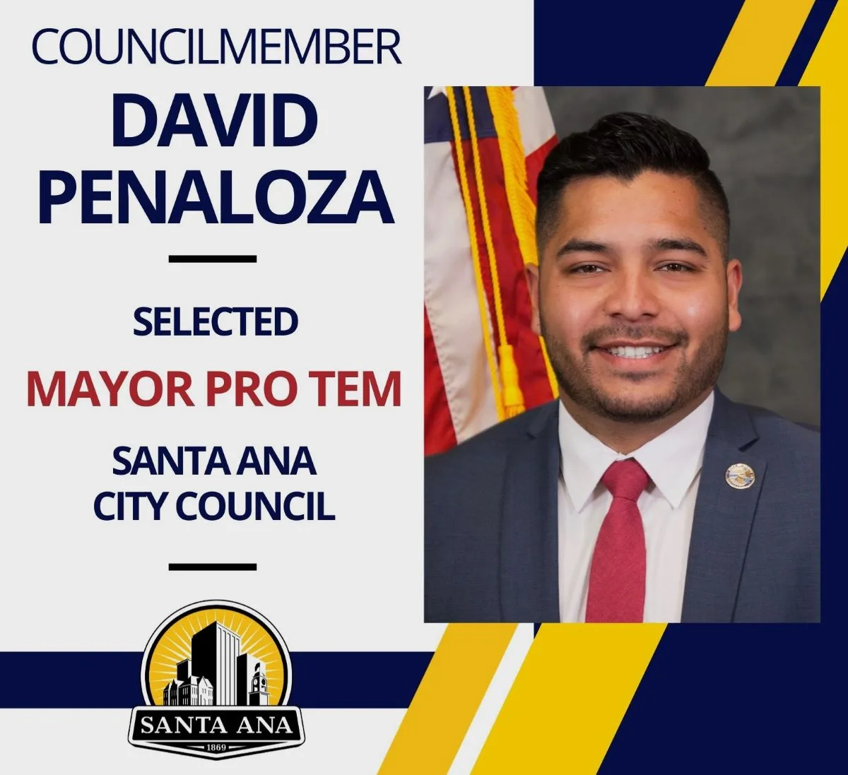 The Santa Ana City Council selected Ward 6 Councilmember David Penaloza to serve as Mayor Pro Tem on Tuesday, January 20, 2026.