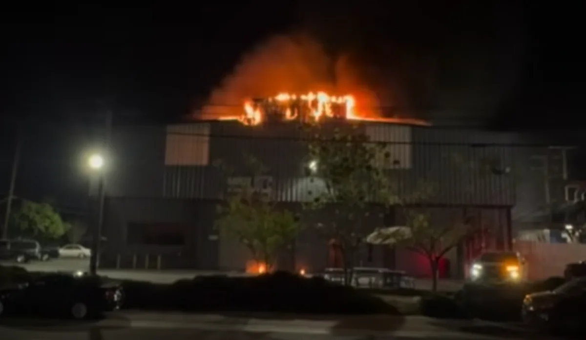 Last night, firefighters responded to a 2-alarm blaze in Santa Ana where flames were blowing through the roof of a metal building used by a business manufacturing aerospace products from aluminum, according to the Orange County Fire Authority.