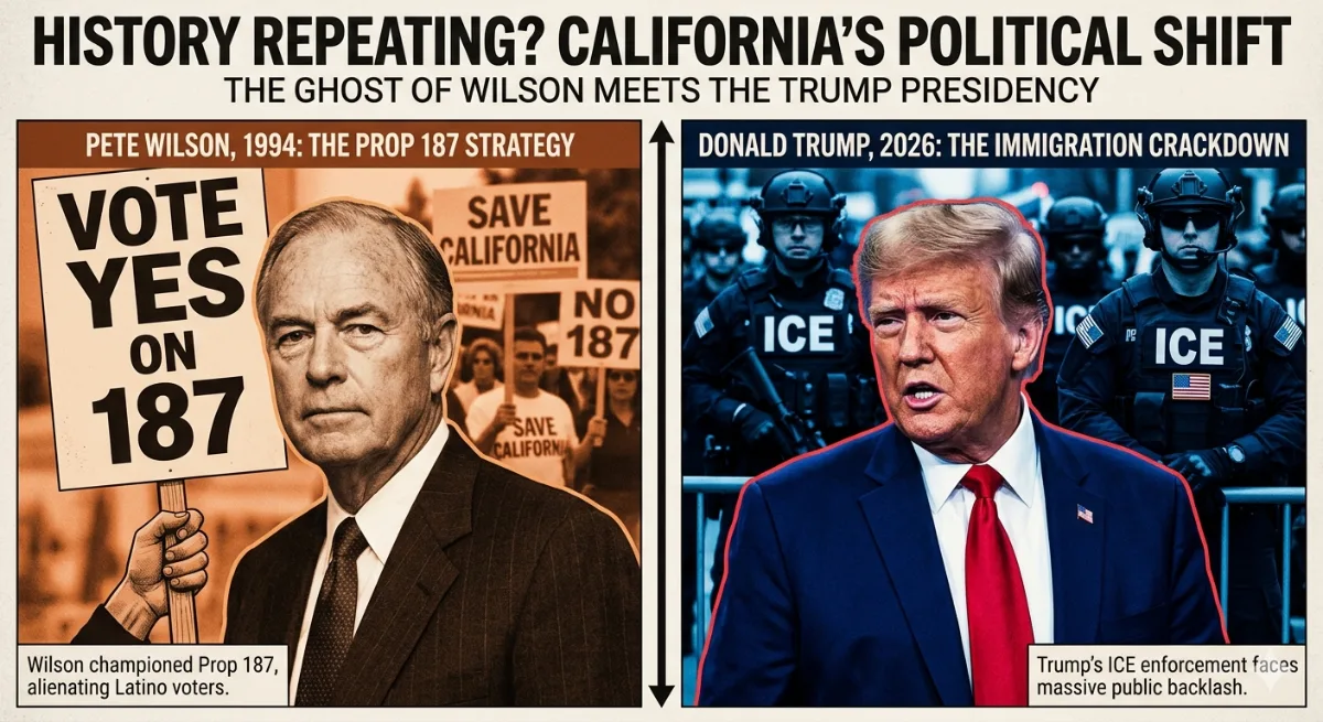 Is history repeating itself in the Golden State, or is it going national? In 1994, Governor Pete Wilson championed Proposition 187, a hardline immigration measure that many credit with permanently alienating Latino voters and “killing” the California GOP. Fast-forward to April 2026, and President Trump’s aggressive second-term immigration crackdown is drawing eerie parallels, with critics theorizing he may be the “new Pete Wilson” for the national Republican party.