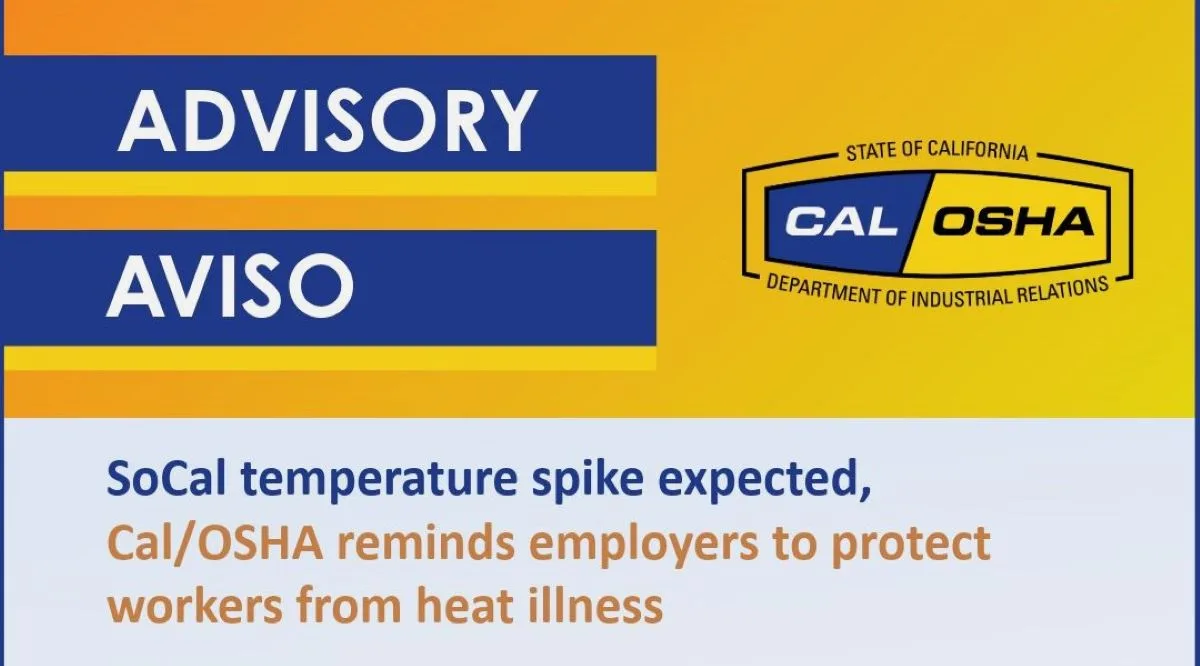 Cal/OSHA is reminding all employers to protect workers from heat illness at outdoor and indoor workplaces as high temperatures are forecast across Southern California this week.