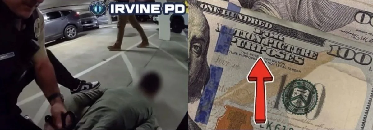 Christopher Scott Newell, 33, of Irvine, was booked at the Orange County Jail. The facility doesn’t accept motion picture prop money for bail.
