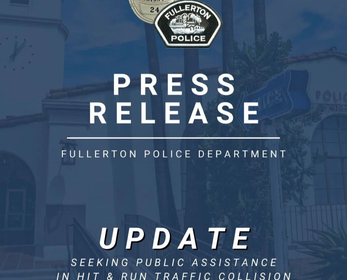The Fullerton Police Department is providing an update regarding a hit-and-run traffic collision involving a pedestrian that occurred on Saturday, December 20, 2025.