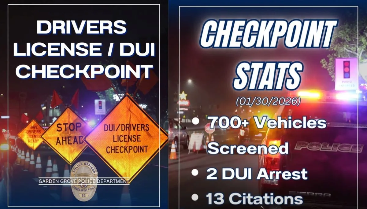 Last Friday, the Garden Grove Police Department’s Neighborhood Traffic Unit conducted a DUI Checkpoint.