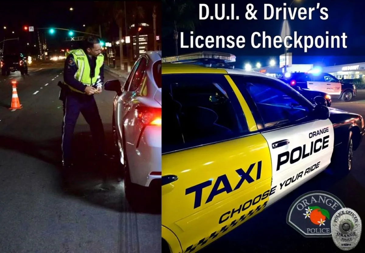 The Orange Police Department will be conducting a DUI/Driver’s License Checkpoint tonight, at 1600 N. Tustin Street, between the hours of 7:00 p.m. to 2:00 a.m.