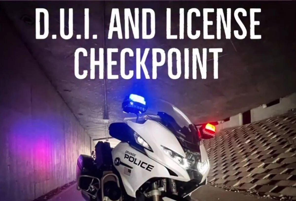 The Orange Police Department will be conducting a DUI/Driver’s License Checkpoint on October 17, 2025, at 3700 W. Chapman Avenue, between the hours of 7:00 p.m. to 2:00 a.m.