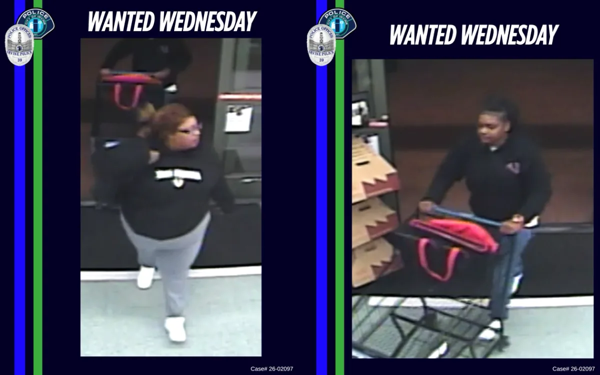 The IPD released two photos of the suspects. f you recognize them, please contact Detective Sampson at jsampson@cityofirvine.org.